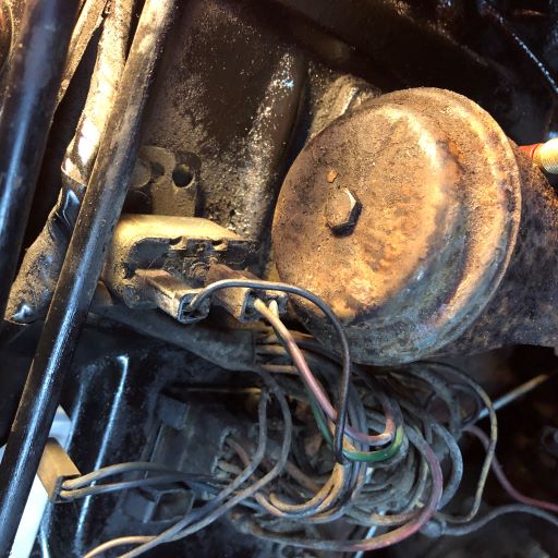 I am also thinking the horn relay, but the factory service manual wireing diagram shows the 3 wires. I really don't see the relay working if it is electrically grounded, as the black wire going to the bulkhead connector is the wire that gets grounded by the horn button.