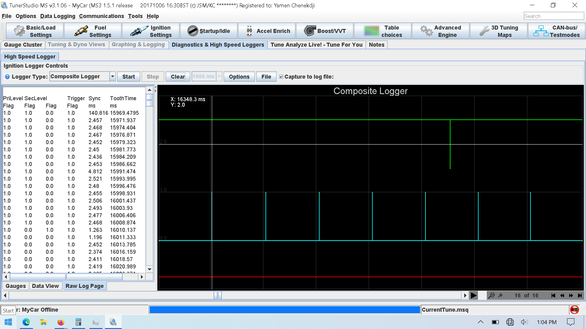 The diyautotune sensor is active low… need to change tunerstudio option to falling edge.