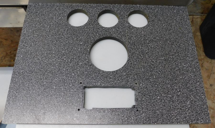 I had this new old stock phenolic board in the pile so I decided to cut some holes in it which are very useful to mount stuff in this very strong board. :)