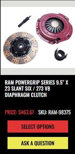 I have gotten to the phase of my clutch life where I buy the discs/plates / Flywheels I want from different suppliers and put my boutique stuff together. No one really makes a package that I usually want, because.... Slant 6.