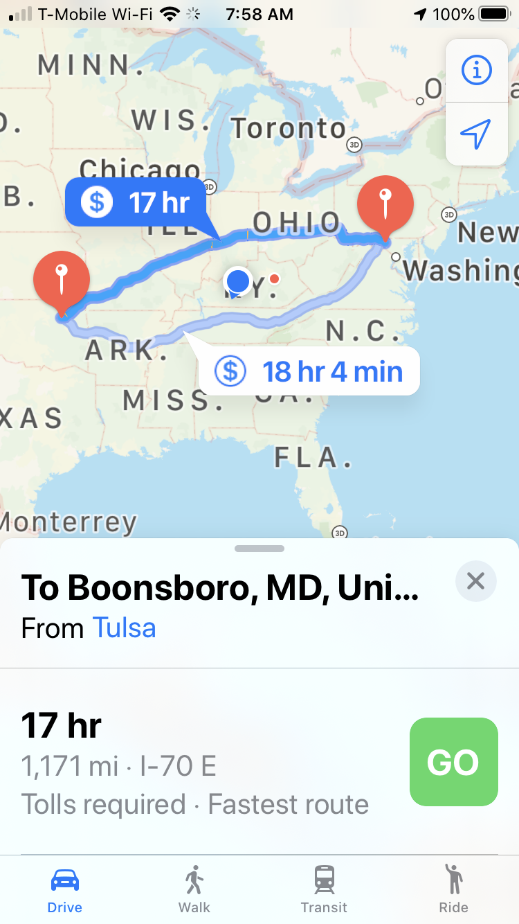 Google Maps shows both suggested routes avoiding KY... :? One North and one South.