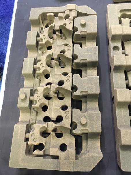 The photo below shows a cylinder head core package that was 3D printed. A cover core would also be printed that makes the shape