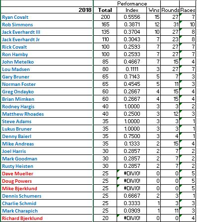 Here are the points earned at Clay City. More commentary and the National points update coming shortly...