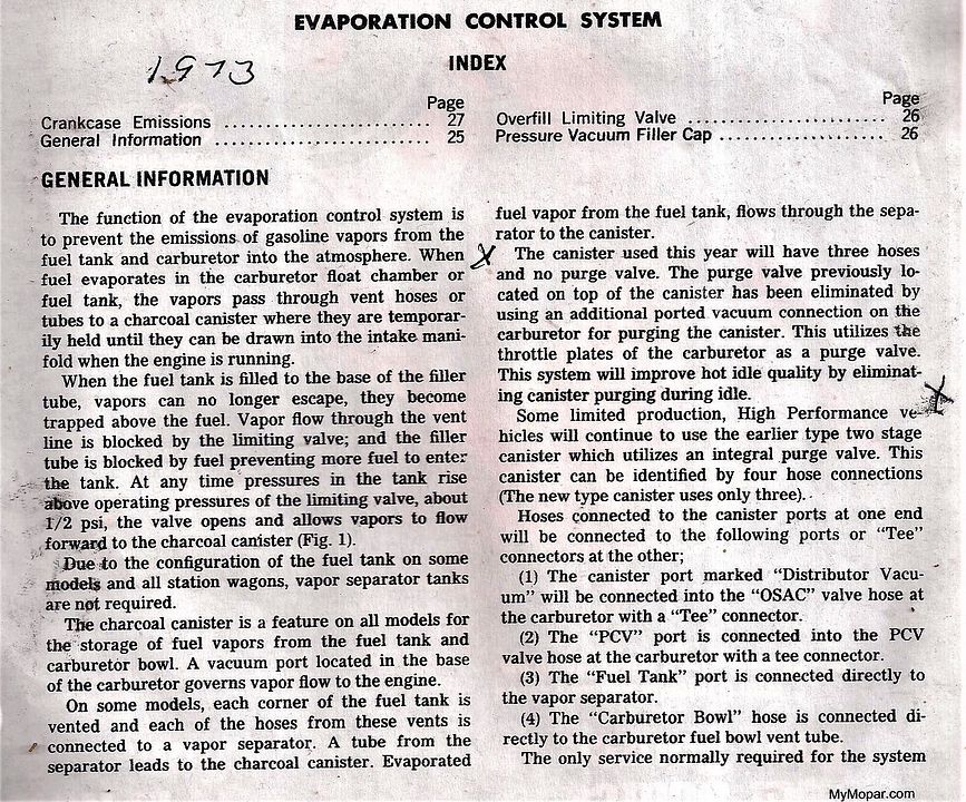 For 1973 should be simple, one line to tank vent, one to carb bowl vent not used cap it off and canister purge line, which goes to purge port on carb. On bbd purge port is right between idle mixture screws |