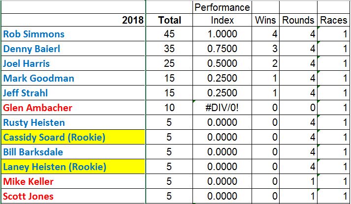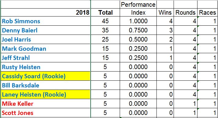 Here are the current points standings with Mo-Kan. Mason-Dixon is coming up this weekend! :D