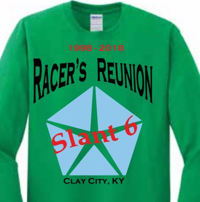 I finally got the T-shirt figured out with the local printer. This is a fund raiser for the Racer's Reunion at Clay City. The shirts are a good quality Gildan brand and you have several color options. There are some long sleeve options and I even thought of Will Burns and asked them for some Tank Top options! :wink: