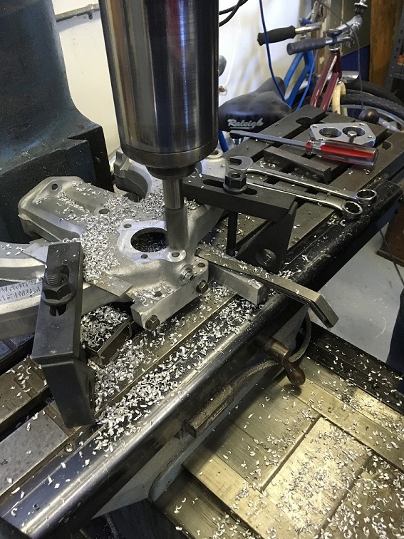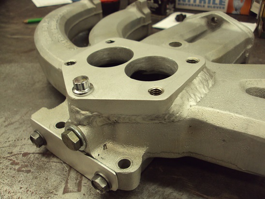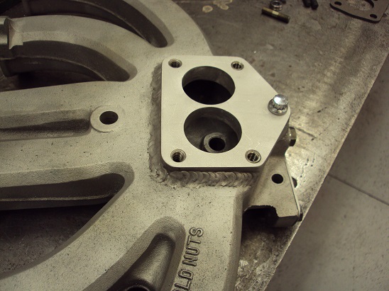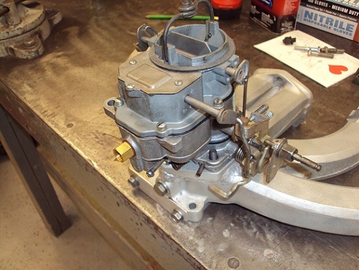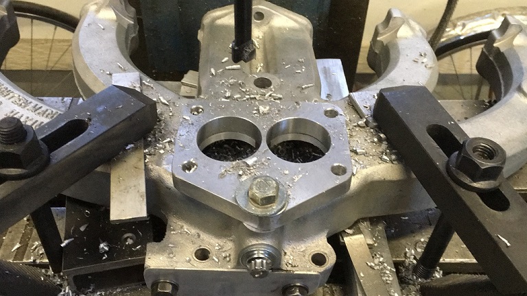 Actually, the carb in pic 1 is sitting on the adaptor backwards, but who's counting. measuring the throttle bores, the 2 barrel is about 25% larger than the 1 barrel. Bridgeport work was a freebee from a friend who is a machinist. Set up was more time consuming than the actual cutting. I decided to go with aluminum because it is a little easier to work with / weld, and I could drop a little weight, and I had a chance to buy one in good shape for $75. Adapter was a 3/4" thick aluminum plate ( scrap ) from my local steel supplier ( $15 ). Carb was in good shape, but an unknown so I rebuilt it. I was originally going to bolt on the adapter, but I was talked in to having it welded on for - no leaks. It will be going on a stock 225 except for a slight CR mod - 7.8:1.
