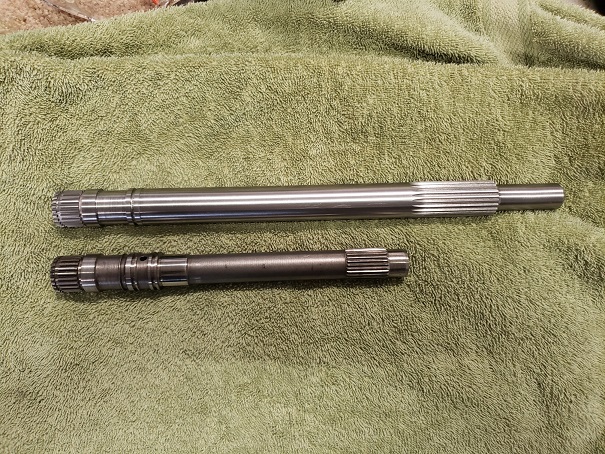 The shaft....always been the hardest part of this project. The stock Mopar shaft uses shaper-cut splines on the small end, and rotary cut splines on the big end. I don't have the ability to do the shaper cut splines...so I made a CAD drawing and had a local gear shop make the shaft out of 300M steel that is normalized and heat treated. Let's just say by the time all that was done, the shaft cost as much as I bought the car for!