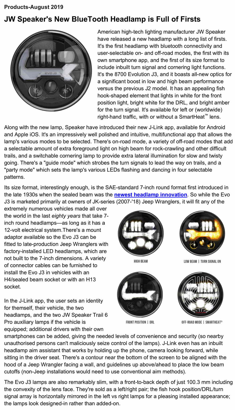 These LED headlamps linked so far aren't advisable if you do a lot of wintertime driving with heavy snow and slush; the LED headlamp lenses run cold so snow and ice build up on them instead of melting off like they do from a warm halogen lamp lens. There is now a heated-lens version of the JW Speaker lamp, definitely the king-of-the-hill headlamp in this size. These also come in chrome or in black.
