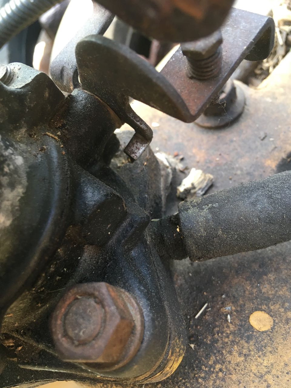 OK - The last of the photos. I wonder if the linkage between the governor and throttle should be adjusted. There is quite a lot of slack in it, so the throttle can bounce through about 1/2 of its movement. In other words, at fully open the plate is at 90°, and at fully closed it is at 0°. But when the throttle control to the governor is at low idle, the throttle plate has no restraint from swinging between 0° and 45°. Maybe the dynamics of a running motor make this irrelevant?
