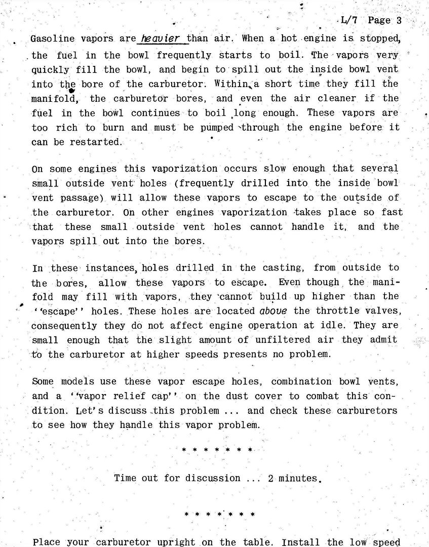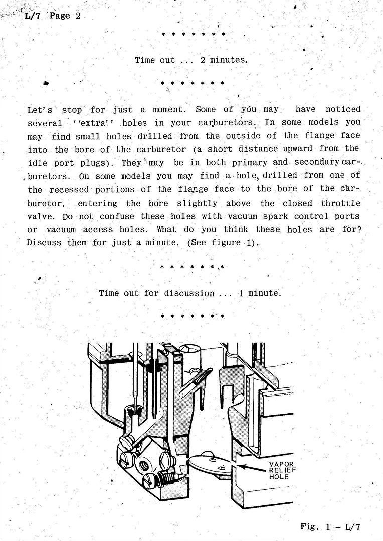 No. A tube has not come out of that hole. It's always only ever been just a hole, it was put there deliberately by Carter (Holley and Bendix and other carb makers put similar holes in similar places). And no, it's not supposed to be connected to anything. And no, it's also not supposed to be blocked off with a ball bearing. When guess-based advice is given and followed, it results in problems. Updated info on what the hole is for, sorta: some of you will remember I liquidated my giant collection of literature when I was moving last Autumn-Winter out of the house (RIP) my grandparents built. There was a fair amount of carburetor lit in the collection, and one page in a Carter service manual or bulletin went into detail on that hole. The explanation was along the lines that it was to alleviate a tendency of fuel vapour to build up in the carburetor after engine shutdown and make hot starts difficult, which makes perfect sense given its location. I was under severe time pressure (and several other kinds) and I think I took a picture of that page before sending off the lit to its new home, but I have no idea where the pic is, and there are thousands still on my phone. Perhaps Matv91 will pull another rabbit out of his hat about it. Doug Dutra has done pretty extensive experimenting with what happens when that hole is plugged, and he found differences in idle transition and spark advance behaviour, so this vapour explanation doesn't cancel the other one, but it does add a piece to the puzzle (or pie?): plugging that hole is likely to aggravate hot-start issues. Carter 3676s: BBS for 1964 170/automatic. |
