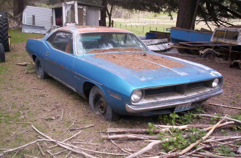 '70 Barracuda, 225 /6, A230 3spd, B5 Blue exterior, blue interior. This base Barracuda was made at the LA plant the 1st week of e-body production (my friend Al in So-Cal has a sister /6 Challenger made within 2 days of mine. he was in the March '91 Slant Six news. he has owned it since '73 and has put over 500K miles on it). Pretty bare bones base model. My dad bought it in '73 and drove it until @ '87 when it was parked in the back 40 .... took me 20 years to convince him I wanted to restore it for myself and not just flip it.
