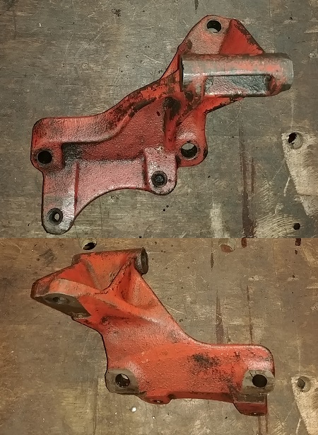 Hopefully that picture uploads. This is the cast iron lower bracket that would've probably come on a '66. There are two bolts that attach it to the engine block and one to the head. The annoying part is that two of these bolts are 3/8" while the third is slightly larger at 7/16". Pretty sure the larger one is the forward of the two bolts that go to the block. All are coarse thread and about 1.5" long. The stock ones from the factory had captive washers, so you'll want to throw washers on these if replacing them. I usually use blue loc-tite as well.