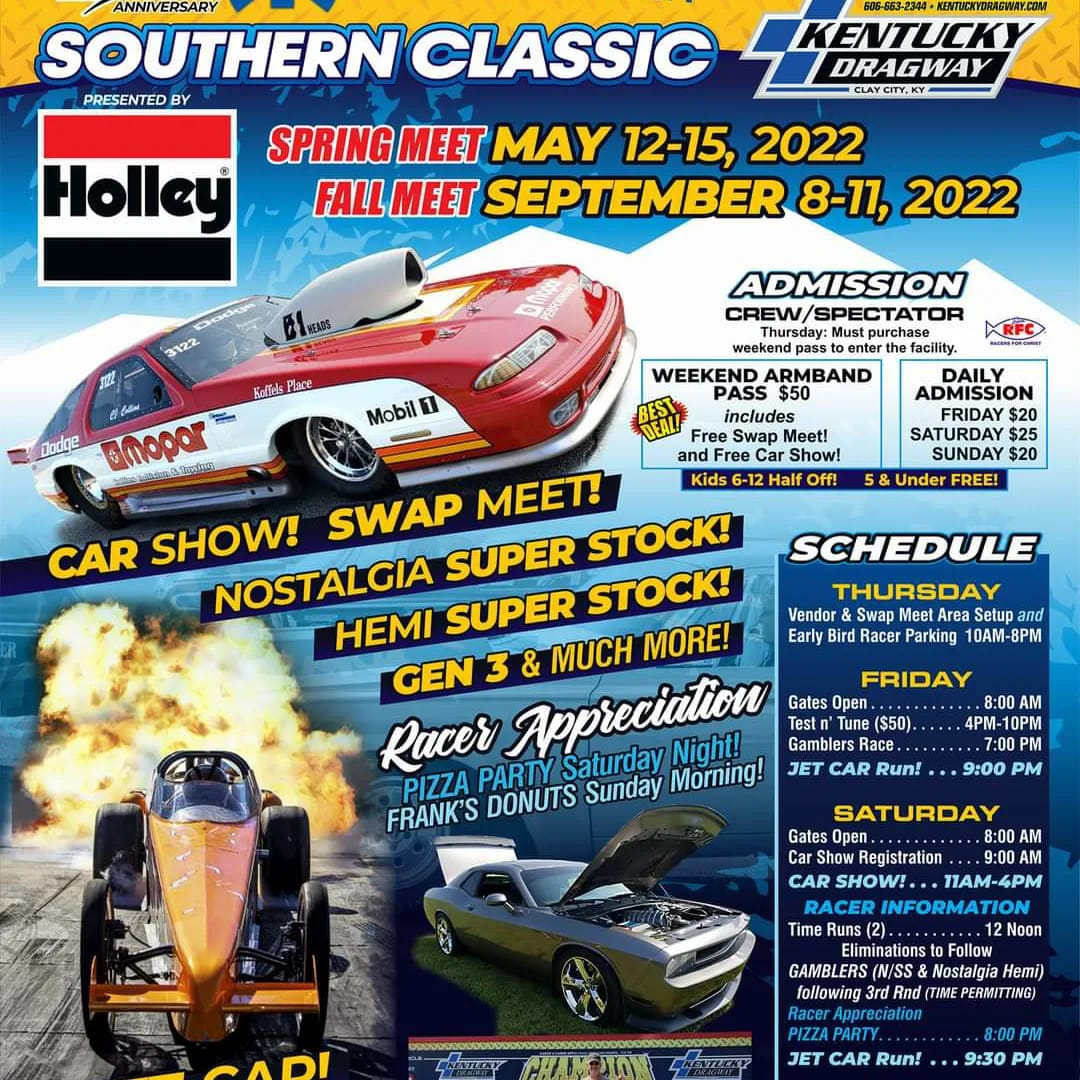 Sunday: ??? Flyer doesn't have it. I'll post an update when they get back to me. Typically Gates open at 8:00 AM, Chapel at 9:00, 1 time run at 10:00 with Eliminations after. 1/8 Mile Race