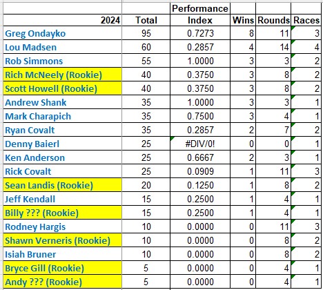 There was another tie for Rookie of the Year with both Rich McNeely and Scott Howell winning three rounds each at Knoxville.
