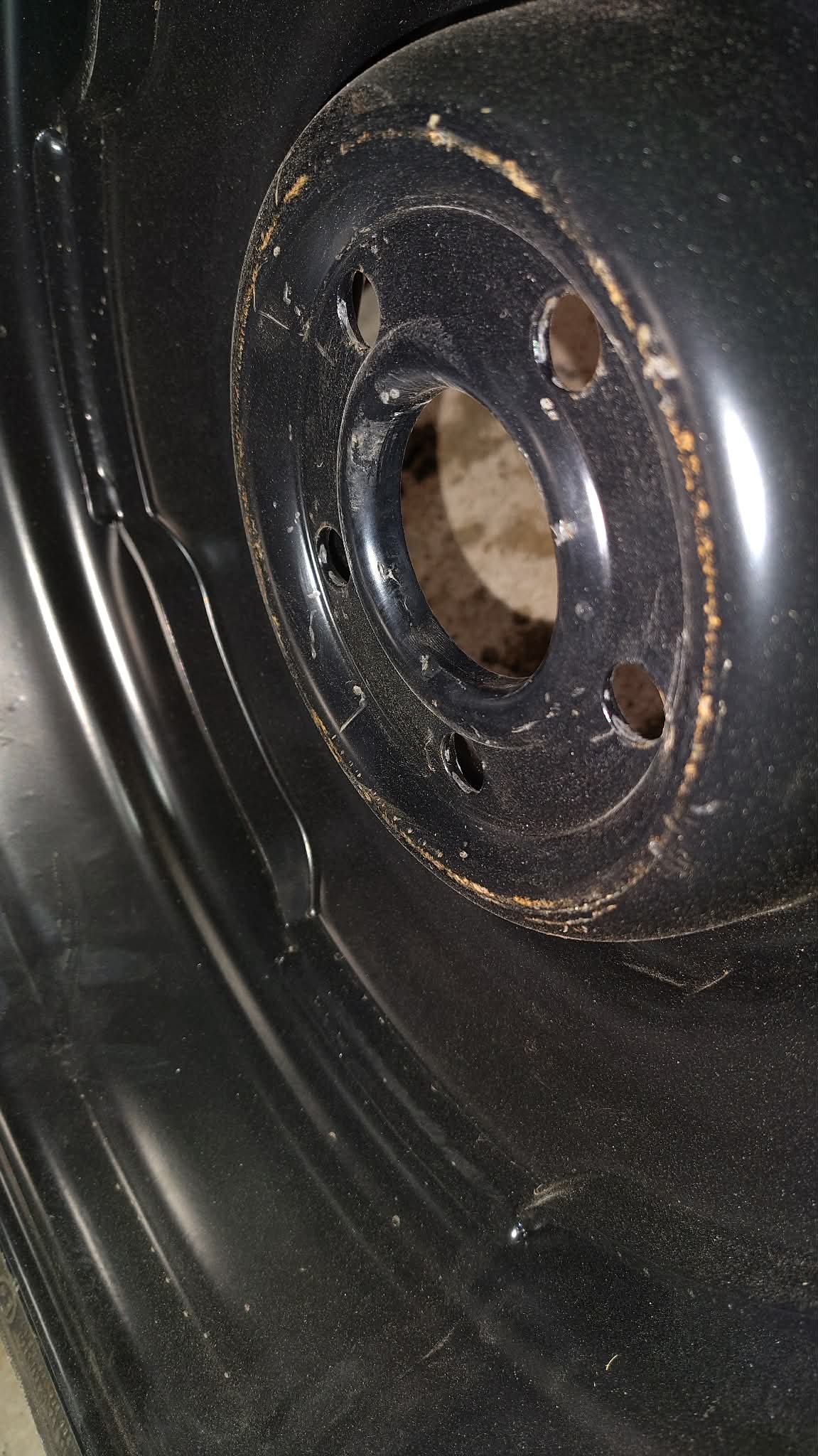 Looking at your photo, I see a ring of abrasion and rust transfer around the ridge of the rim, just outside of the circle of lug holes.