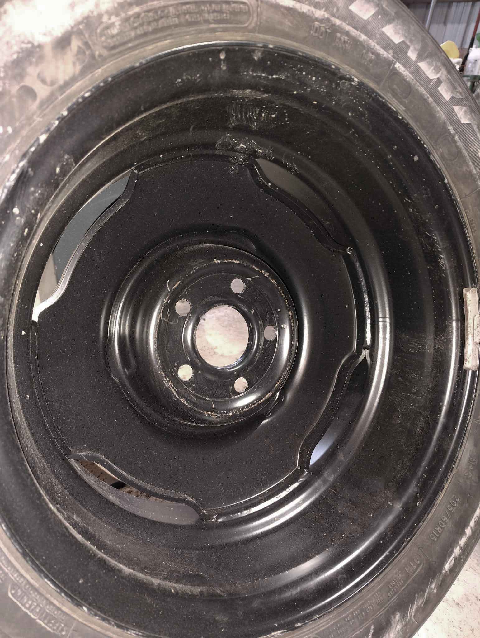 So anyhow, I ordered 4 wheels from Coker tire I got the wheel vintiques 63 series OE Chrysler wheels the 15x7 5x4 with the 4.25 backspace to clear the new disc brakes in the front. I got tires mounted so I could swap out the 13's and actually start working on the front brake conversion but when I tried to put those new wheels on they will not seat.