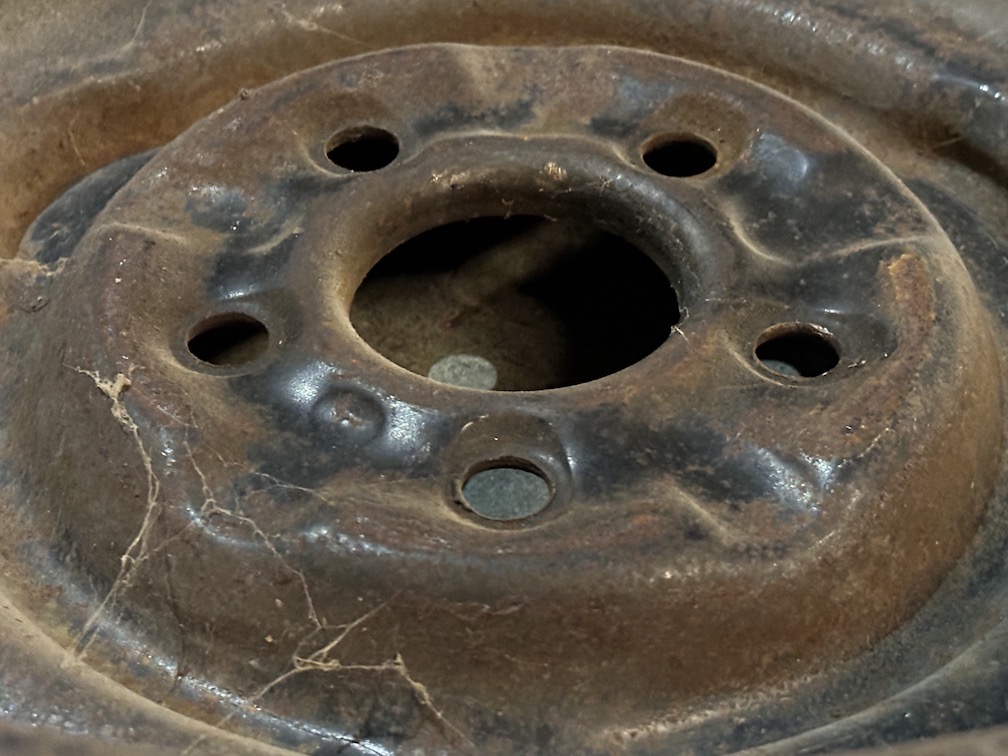It worked; I see 'em. As I suspected, I would strongly un-recommend using these. For one thing, the lug holes appear to be just crudely stamped. There is no cone-shaped seat for the lug nuts. This is ugly, nasty, not acceptable, quite dangerous. Refer back to that pic I linked up above, of the factory wheels – see how the lug holes have a thicker, cone-shaped seat about them, not just carelessly-punched plain holes.